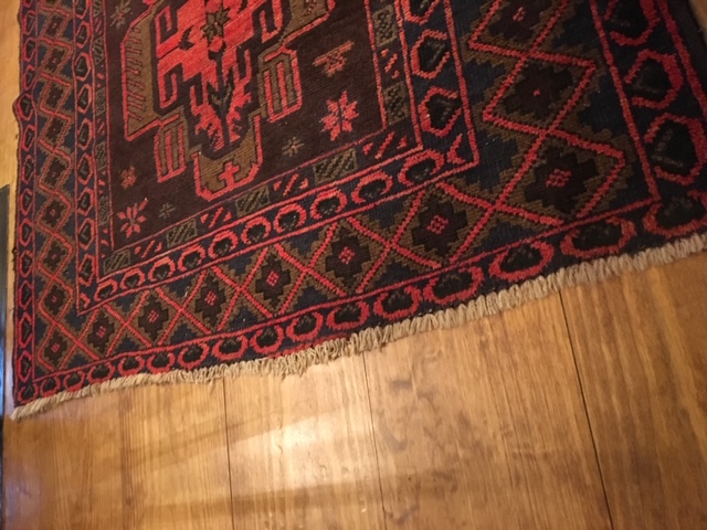 Unusual and very unique motifs and border for a Baluchi style rug.