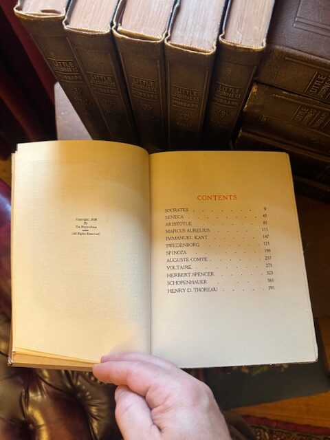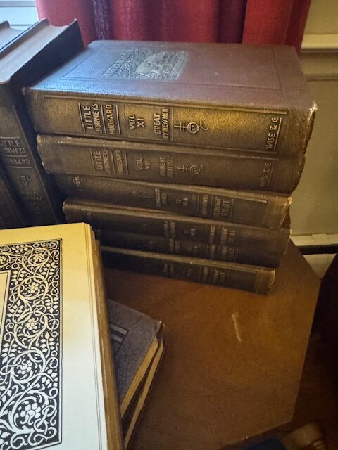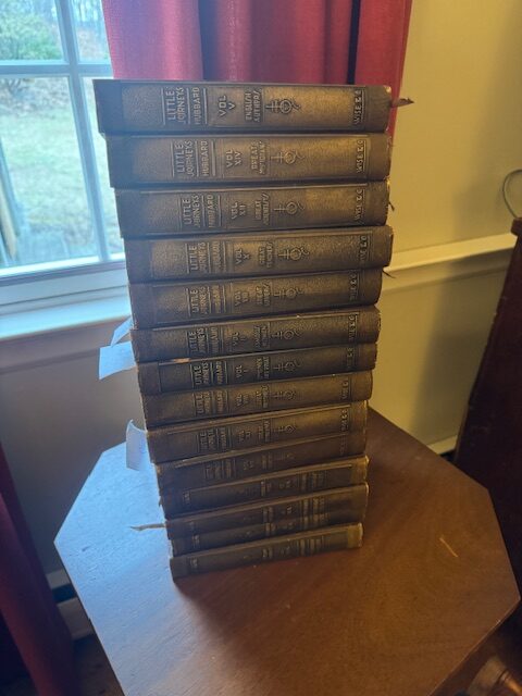 Elbert Hubbard (1856–1915) was an American writer, publisher, artist, and arts and crafts proponent. He founded the Roycroft Press in East Aurora, New York, a center of the American Arts and Crafts Movement. These antique 14 volumes of his “Little Journeys,” printed in 1928 after his death, bring warmth, character, and timeless charm to any library or bookcase. These books highlight historic figures in science, philosophy, and business, making for an engaging and interesting read. These books can be purchased and picked up at the store. No shipping.