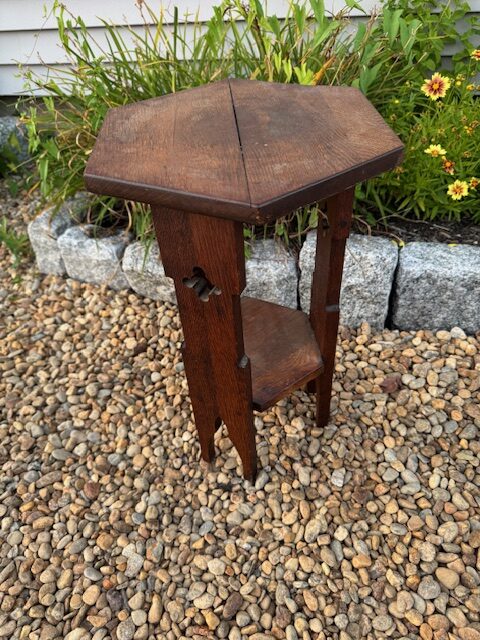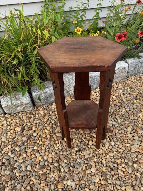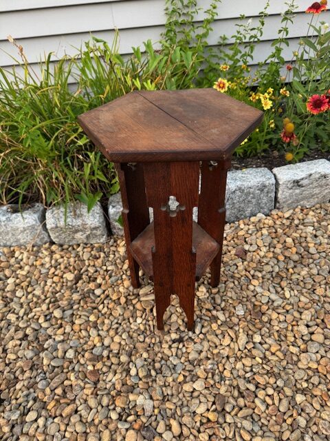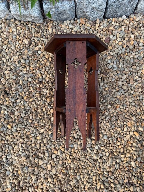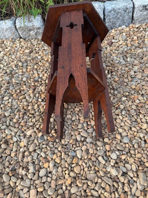 The Gothic Revival style, popular in the late 19th and early 20th centuries, influenced furniture design with pointed arches and quatrefoil motifs. Often seen in smaller pieces like tables and plant stands, this style adds medieval-inspired elegance and architectural interest. These handcrafted pieces bring historic charm and distinctive character to Victorian, eclectic, or traditional interiors. Purchase and pick up at the store. 13″w x 12″l x 20″h SOLD 2025