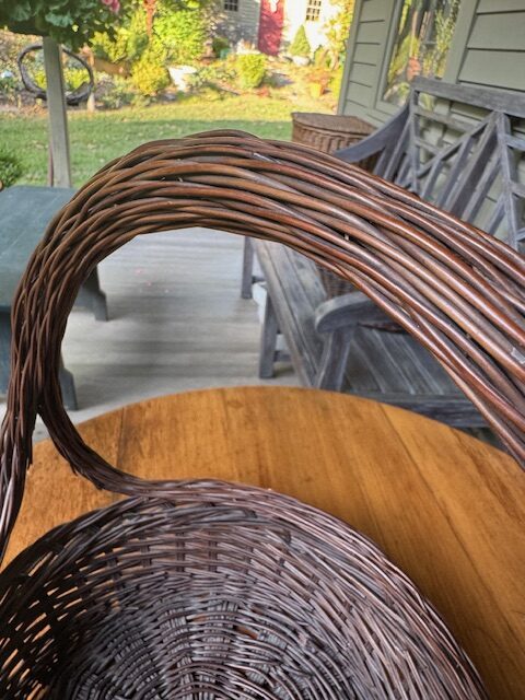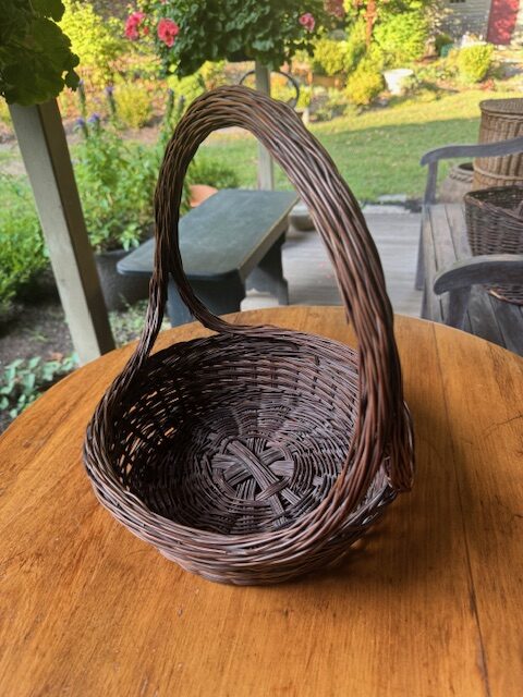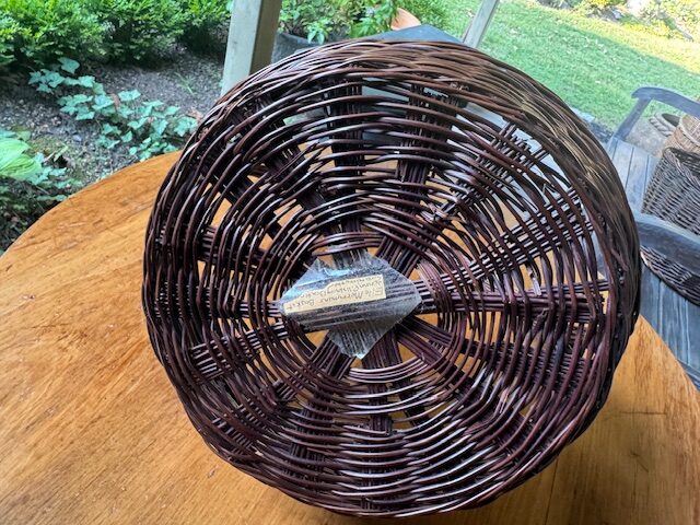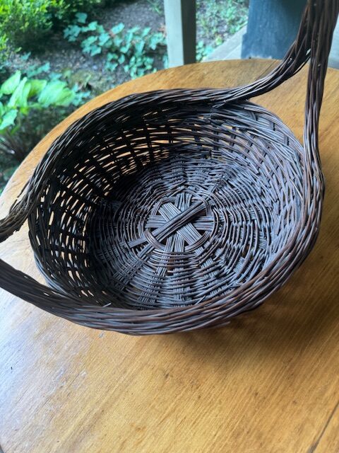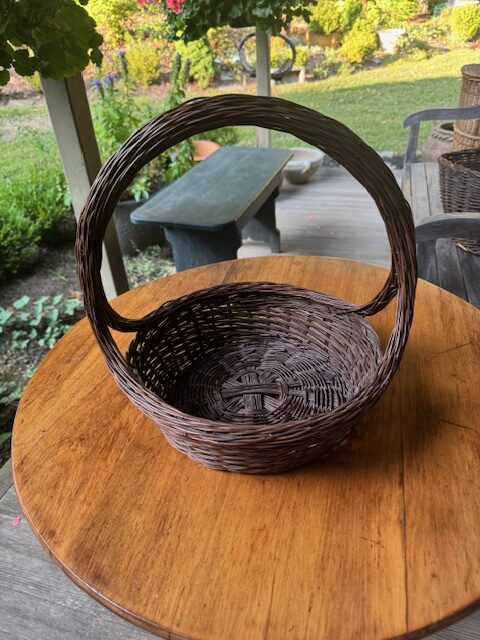 This early 20th-century Gullah-inspired basket, woven by South Carolina African American artisans from long pine needles, showcases exceptional craftsmanship. Its rich patina and stunning condition highlight its age and beauty. An old label taped to the side notes it belonged to Joann Pillsbury Baxter, adding provenance. A treasured heritage piece, this basket is both a collector’s item and a functional heirloom, perfect for display, decor, or preserving southern history. 11″w x 13 1/2″l x 13″h Purchase and pick up at the store only. No shipping.