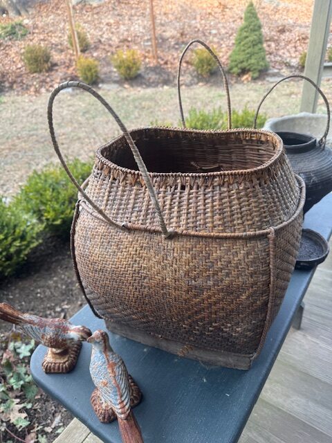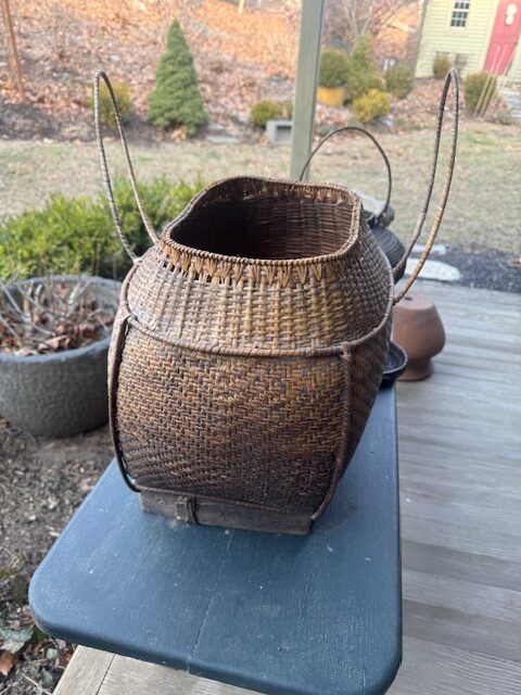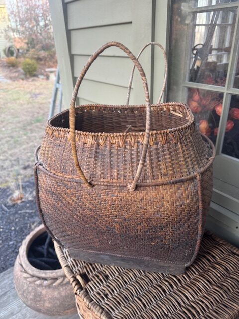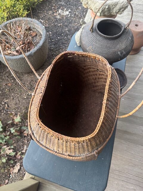 This vintage Nepalese Tharu basket, traditionally used by tea leaf pickers, combines function and artistry. Handwoven from natural materials such as various types of grasses, its sturdy construction and practical handles made harvesting easy, while its elegant form reflects regional craftsmanship. A rare example of cultural heritage, this basket is perfect for display, storage, or as a unique collector’s piece. 16″l x 14’w x 15″h Purchase and pick up at the store only. No shipping.